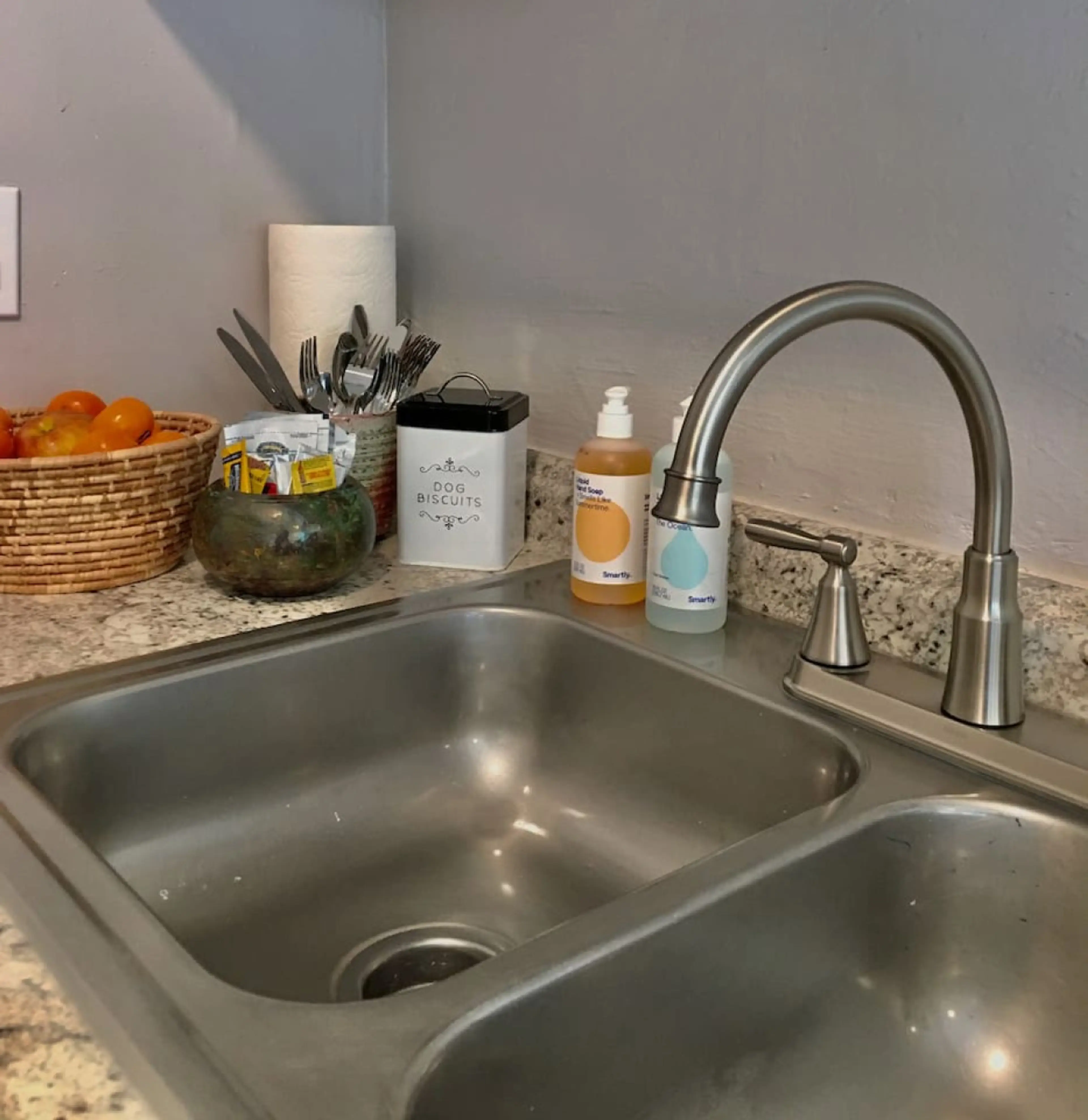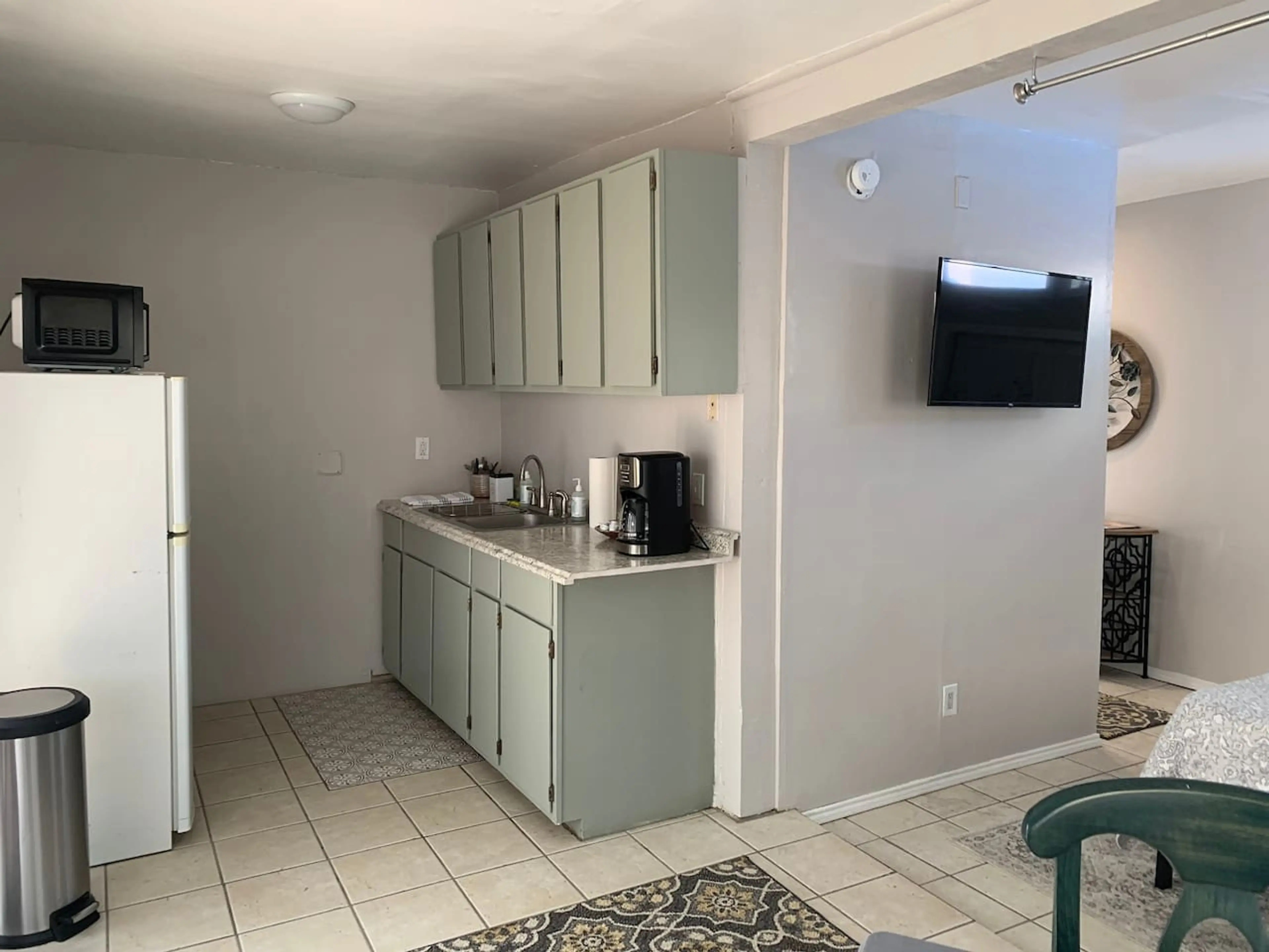 Wonderfully serene little studio with a full kitchen. The bed is a queen memory foam, so it is very comfortable. Bring your dog with you, there is a nice-sized, secure yard for your pooch. There is everything you need to cook a small meal on the apartment-sized electric stove and oven, the kitchen i...