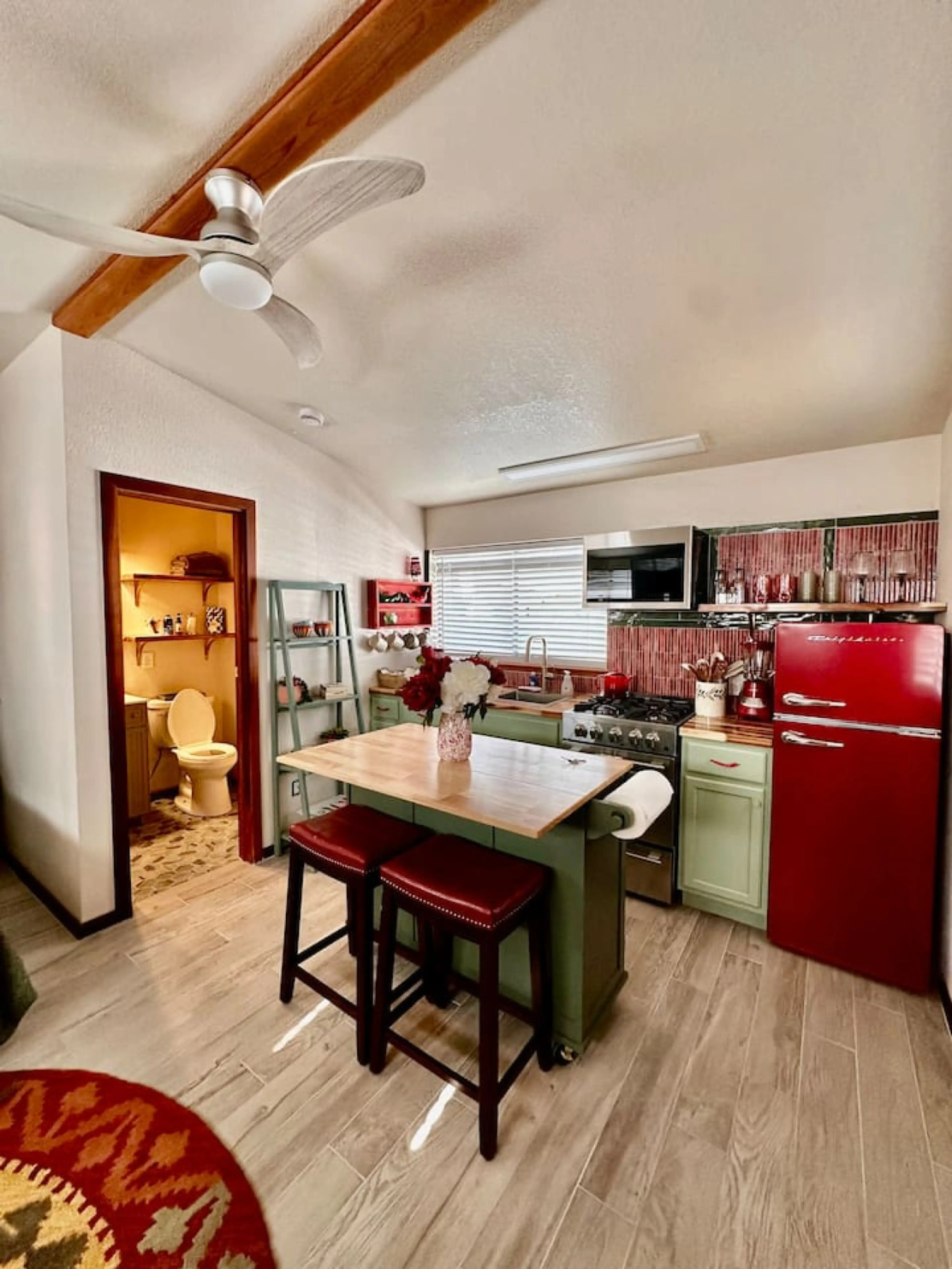 Enjoy this downtown casita near the Las Cruces “downtown mall” with shops, museums, theaters, galleries, restaurants and the famous Farmers Market. Stylishly decorated our casita poses the NM question, “red or green?” Small but mighty this casita has a full kitchen, shower bath, full sized bed and a...